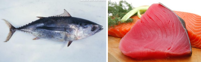 含量很低,故绵软度口感不及三文鱼那么好,金枪鱼营养价值比三文鱼略高,且金枪鱼为野生鱼,